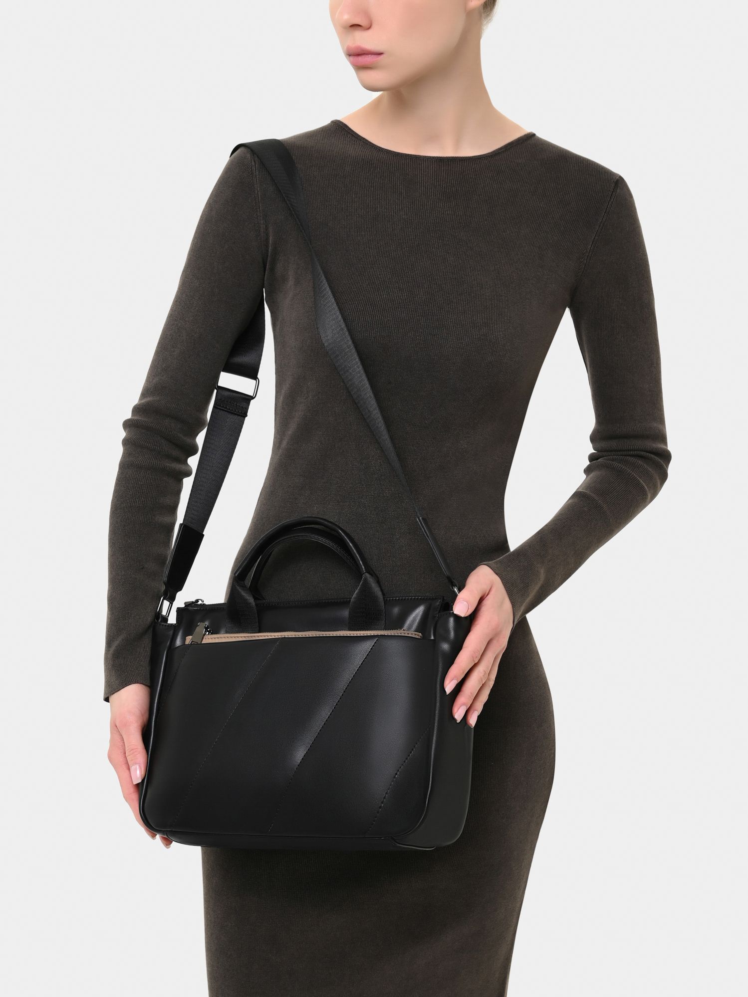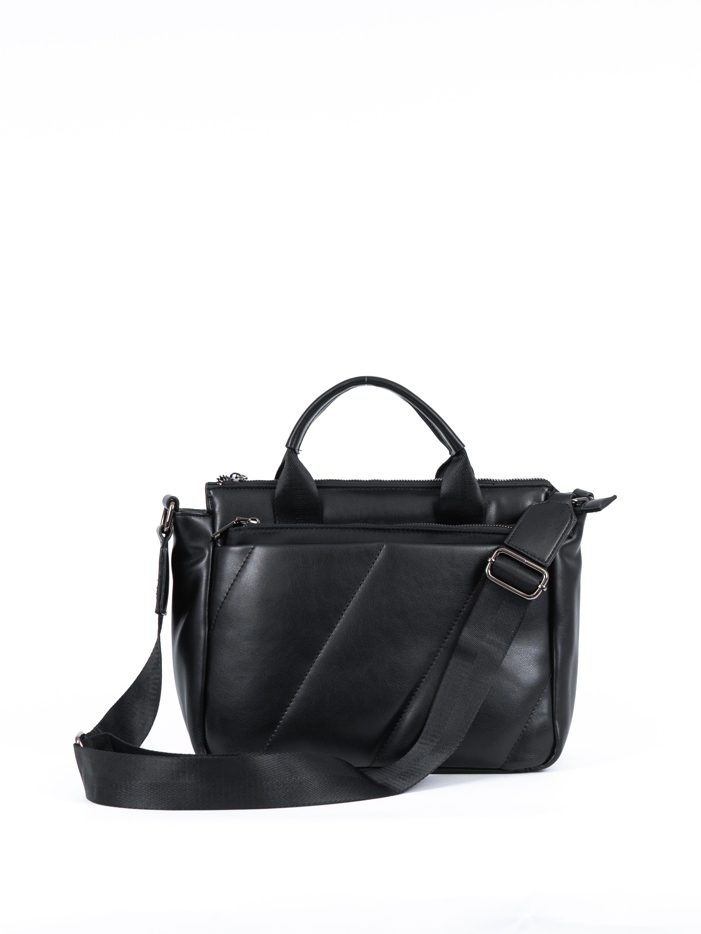 Сумка женская от бренда Portofiano. Верх изготовлен из 100% экокожи черного цвета. Материал подкладки текстиль (100% полиэстер). Станет отличным завершением Вашего гардероба.