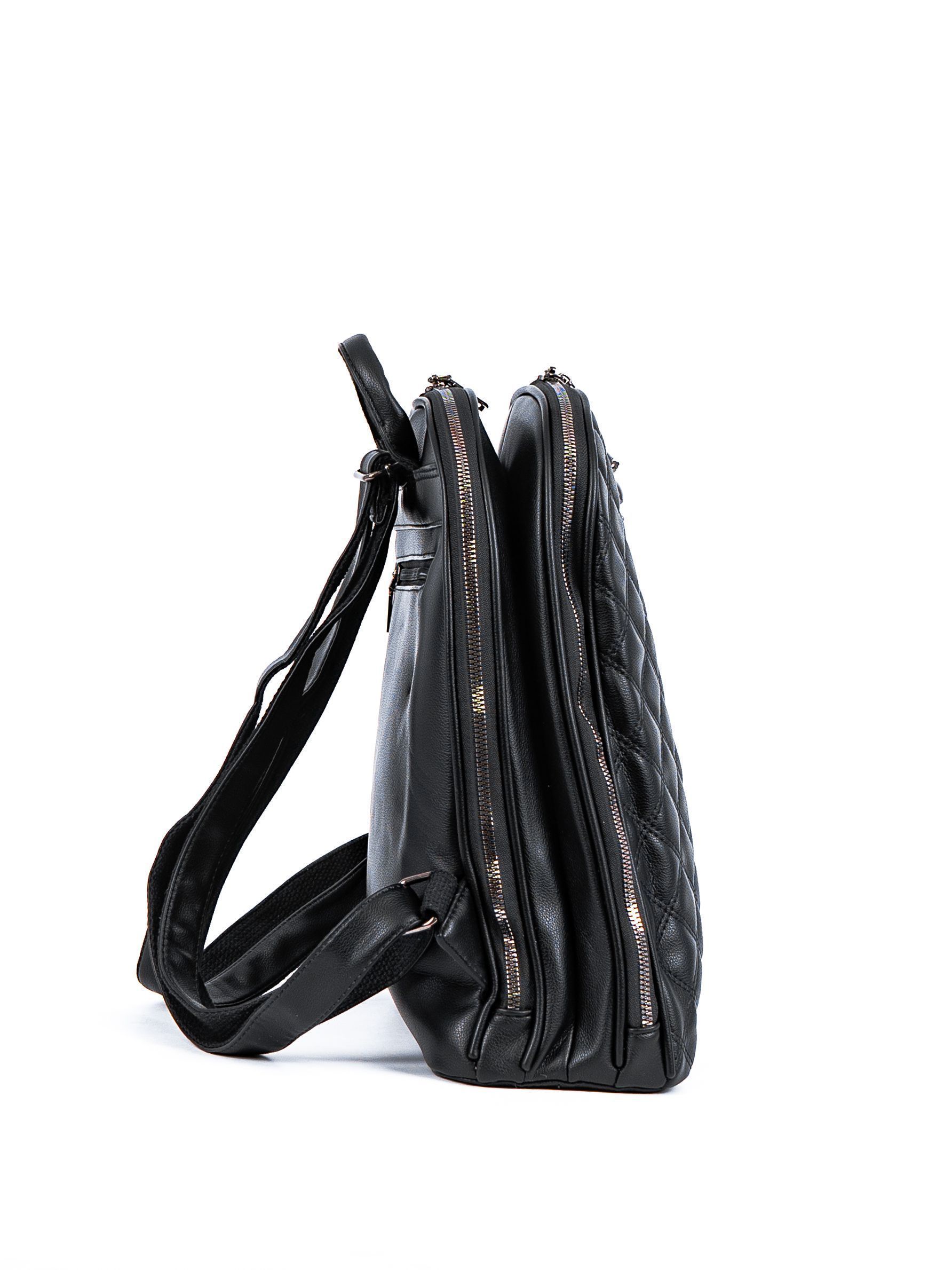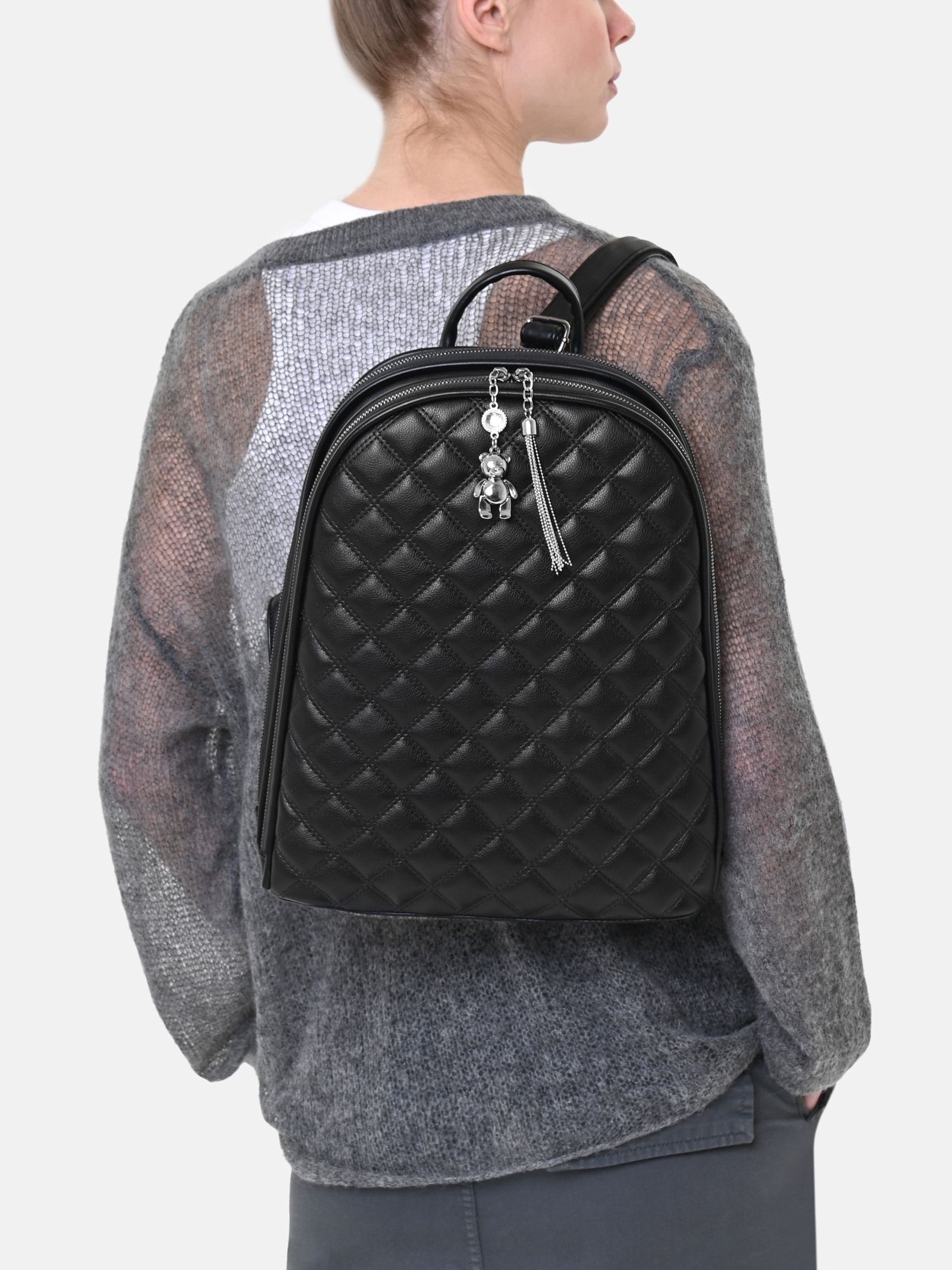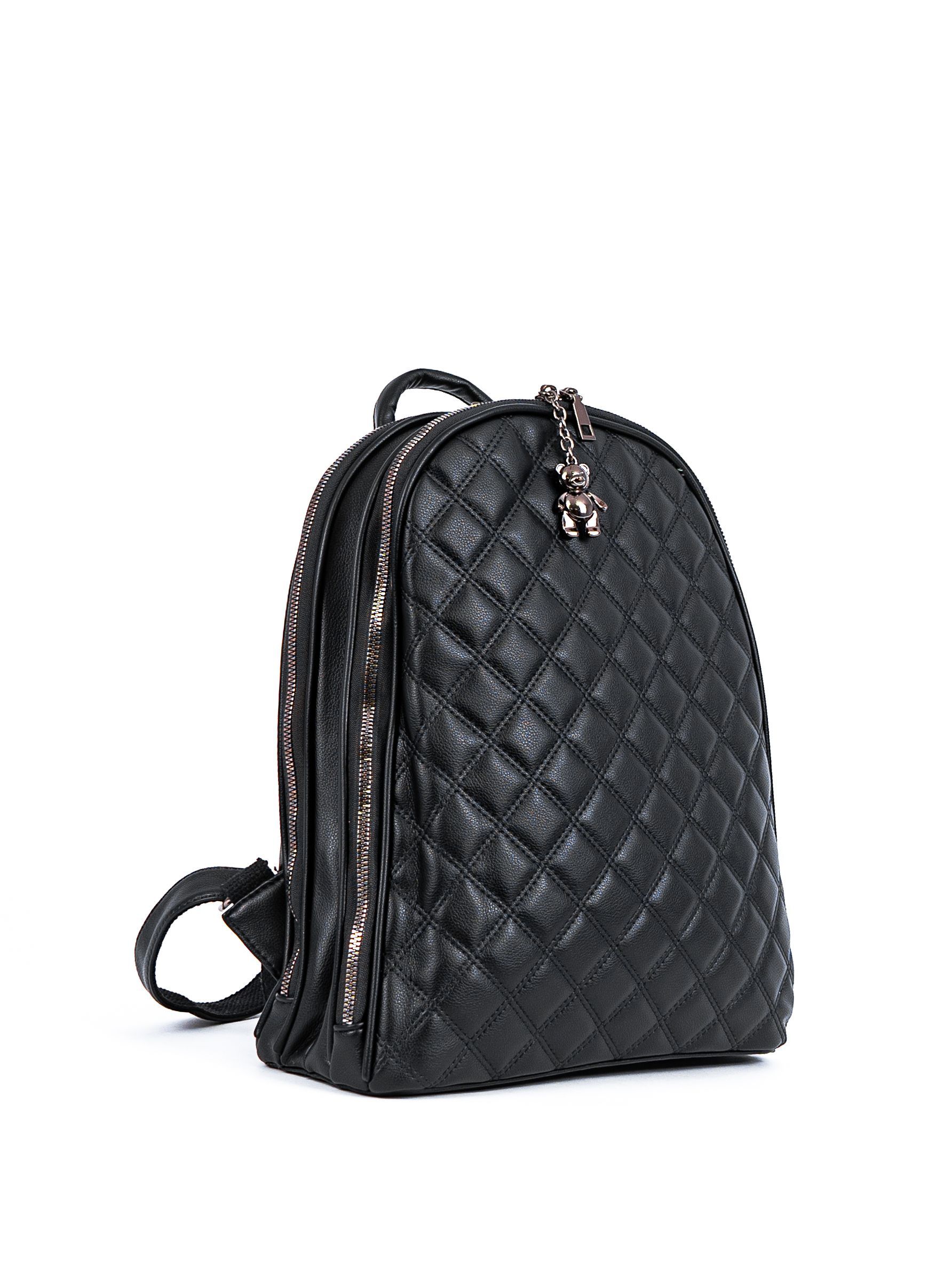 Рюкзак женский от бренда Portofiano. Верх изготовлен из тисненой 100% экокожи черного цвета. Материал подкладки текстиль (100% полиэстер). Станет отличным завершением Вашего гардероба.