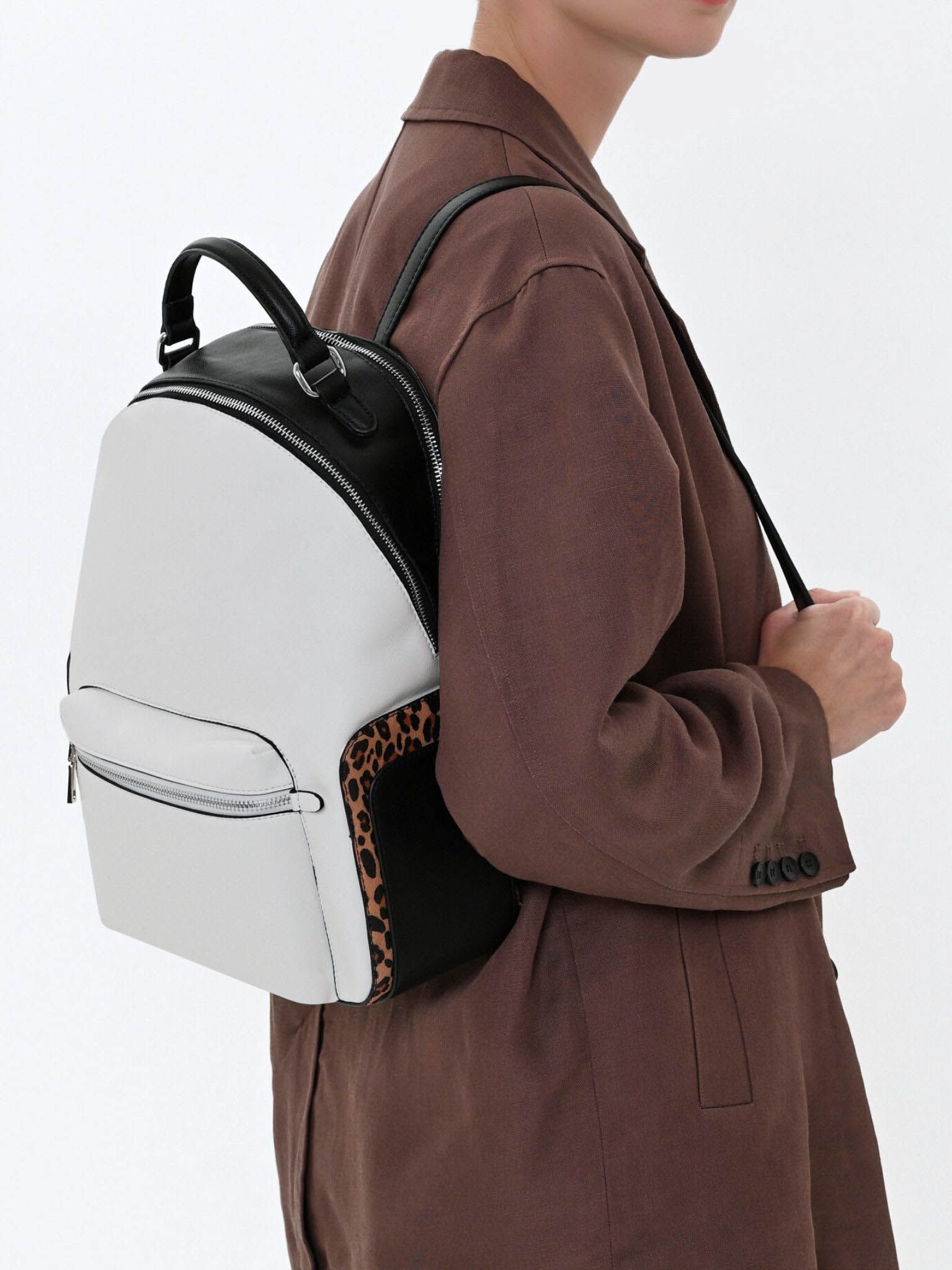 Базовый белый цвет с черными вставками рюкзака сочетается с разной палитрой одежды и сделает Ваш образ более ярким и привлекательным.