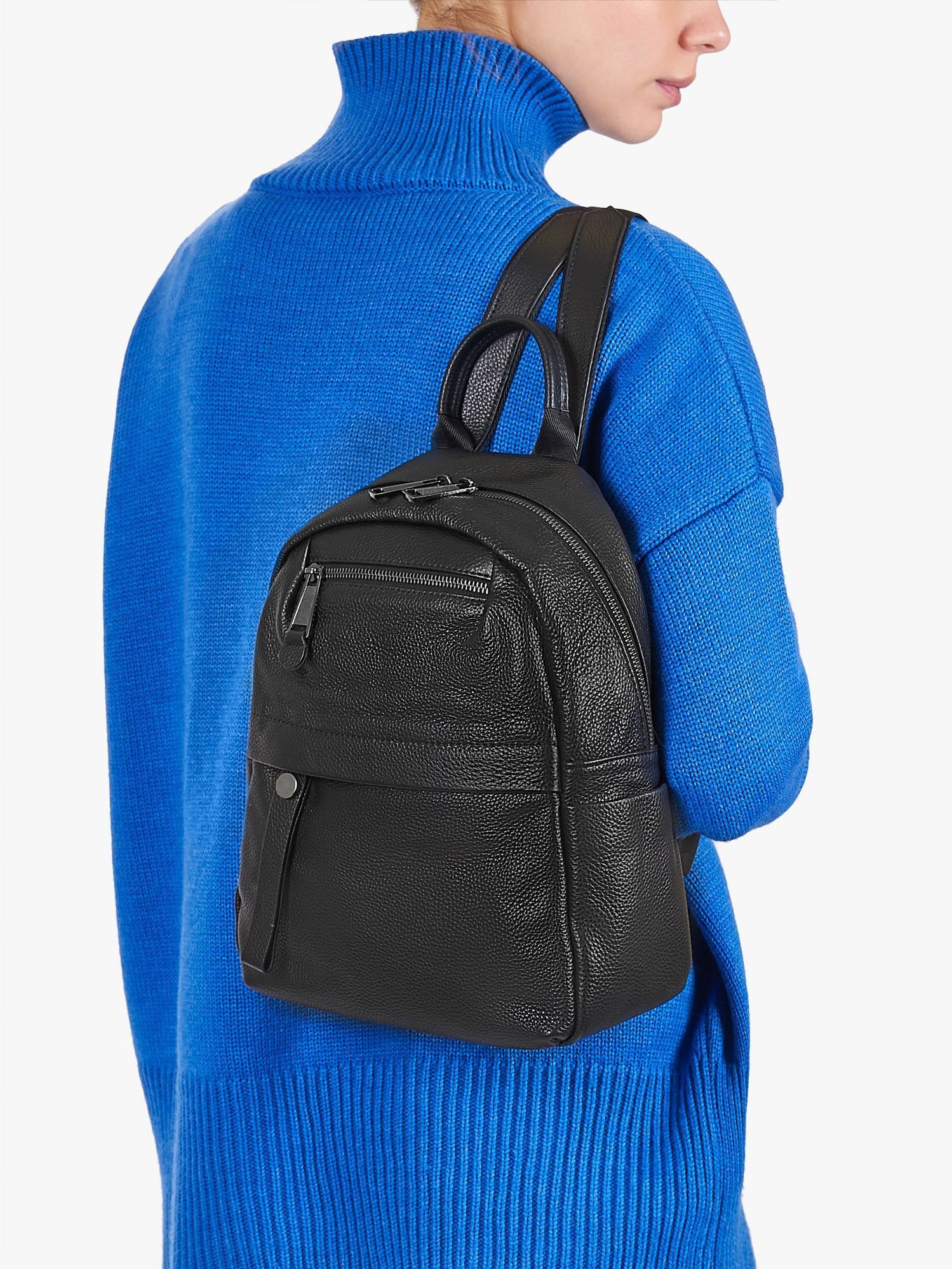 Рюкзак женский от бренда Portofiano. Верх изготовлен из 100% натуральной кожи черного цвета. Материал подкладки текстиль (полиэстер 100%). Станет отличным завершением Вашего гардероба.