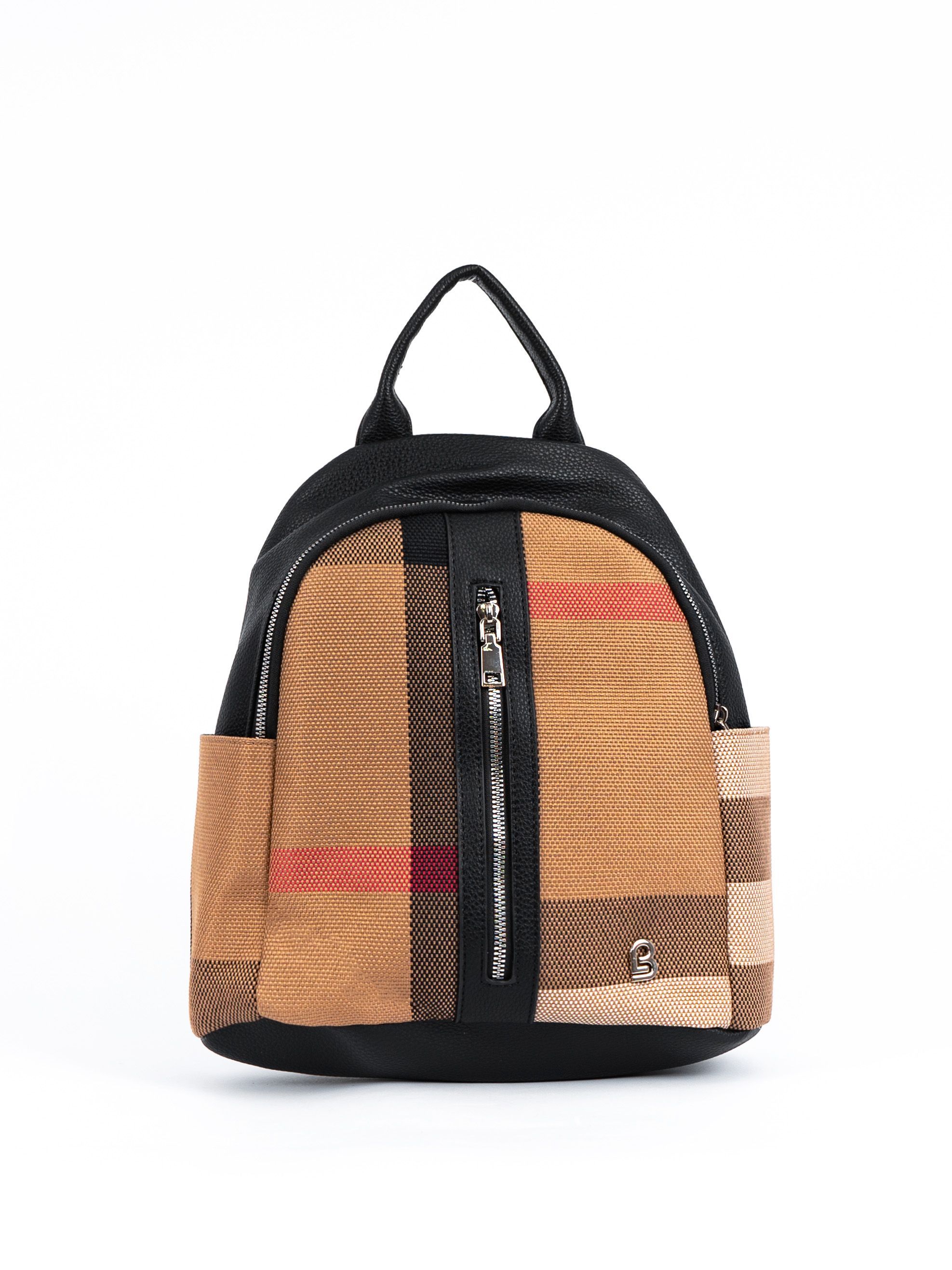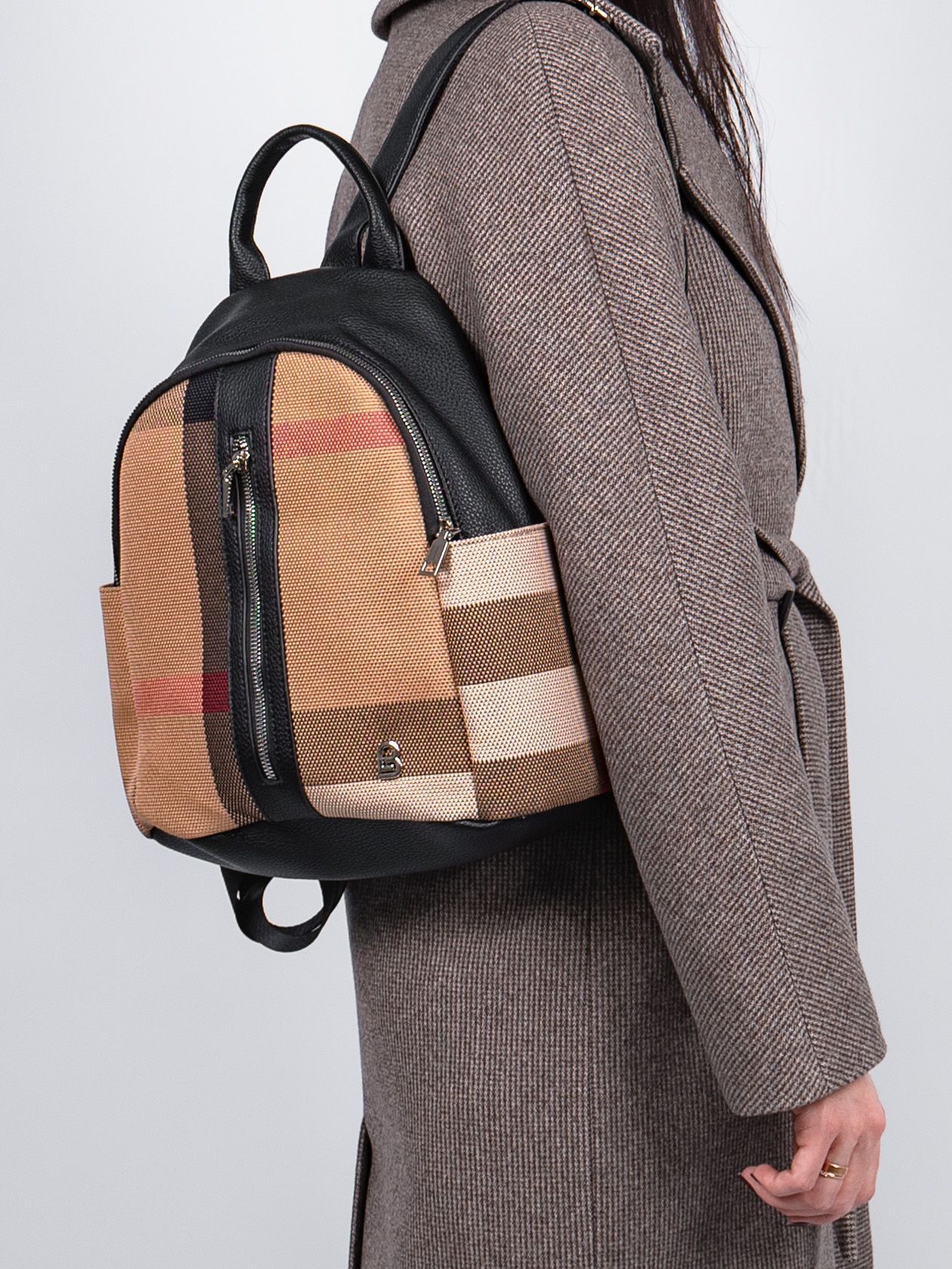 Рюкзак женский от бренда Baden. Верх изготовлен из натуральной кожи черного цвета и текстильного материала комбинированный разных цветов. Материал подкладки текстиль. Станет отличным завершением Вашего гардероба.