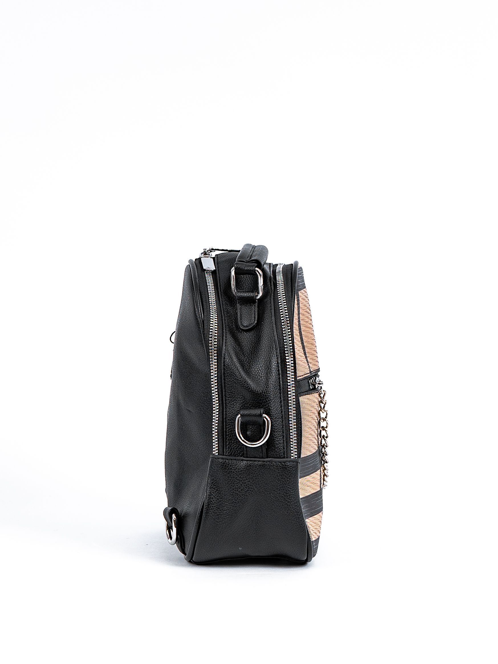 Рюкзак женский от бренда Baden. Верх изготовлен из искусственной кожи черного цвета с бежевыми вставками. Материал подкладки текстиль. Станет отличным завершением Вашего гардероба.