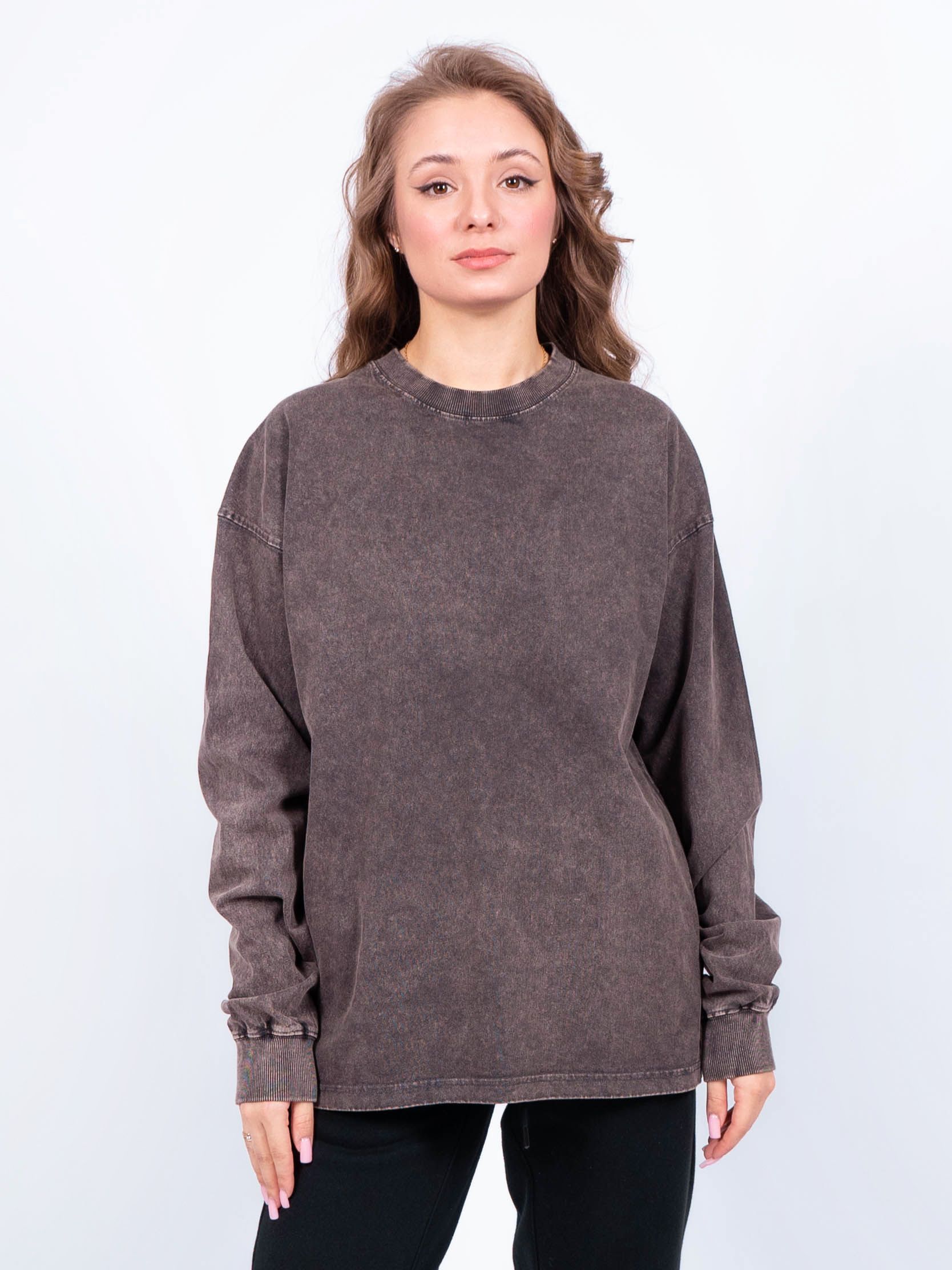 Лонгслив в трендовой расцветке с эффектом выварки ткани имеет насыщенные цвета и минималистичный дизайн. Лонгслив варёнка свободного кроя – оверсайз (oversize) с округлой горловиной держит форму и со временем не растянется. Состав – 100% хлопок средней плотности, актуален в любое время года. Кофта с круглым вырезом выполнена из высококачественного материала, что позволяет вашему телу дышать и быть незаменимой базовой вещью в Вашем гардеробе. Лонгслив свободного кроя с удлиненным рукавом и со спущенным плечом, имеет эффект потертости ткани