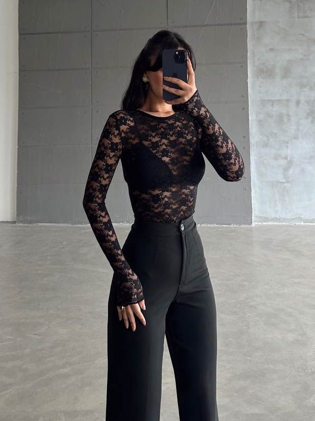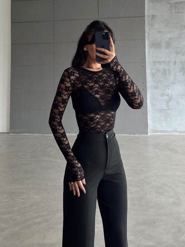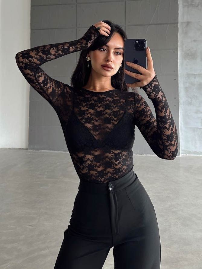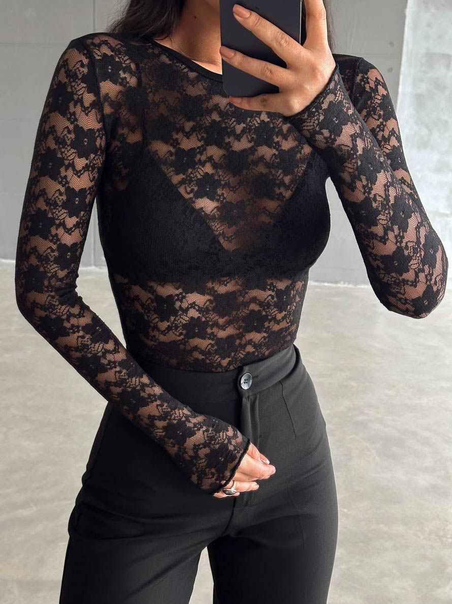 Обтягивающий полупрозрачный лонгслив из гипюра с длинным рукавом для модниц. Отлично подходит на высоких и невысоких девушек.Идеальный вариант на корпоратив или вечеринку в клубе. Отлично сочетается с топом, корсетом, жакетом, с джинсами, брюками, юбкой, шортами.