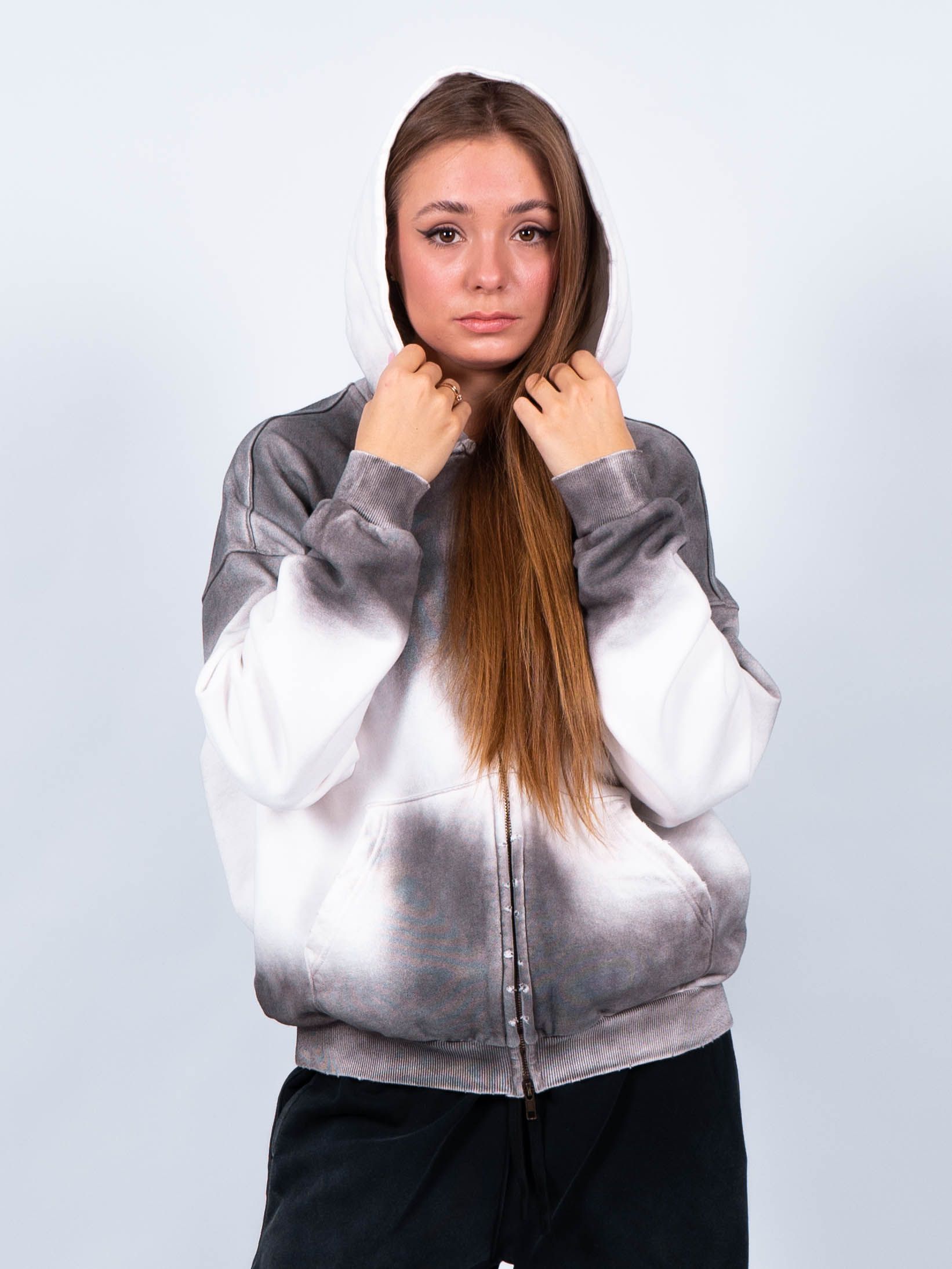 Укороченное худи на молнии эффектно смотрится с любыми джинсами: укороченными и широкими, клеш и бойфрендами. Практичная, удобная кофта с капюшоном, вместительными карманами не потеряет изначальный вид после стирки, не линяет, не вытягивается.