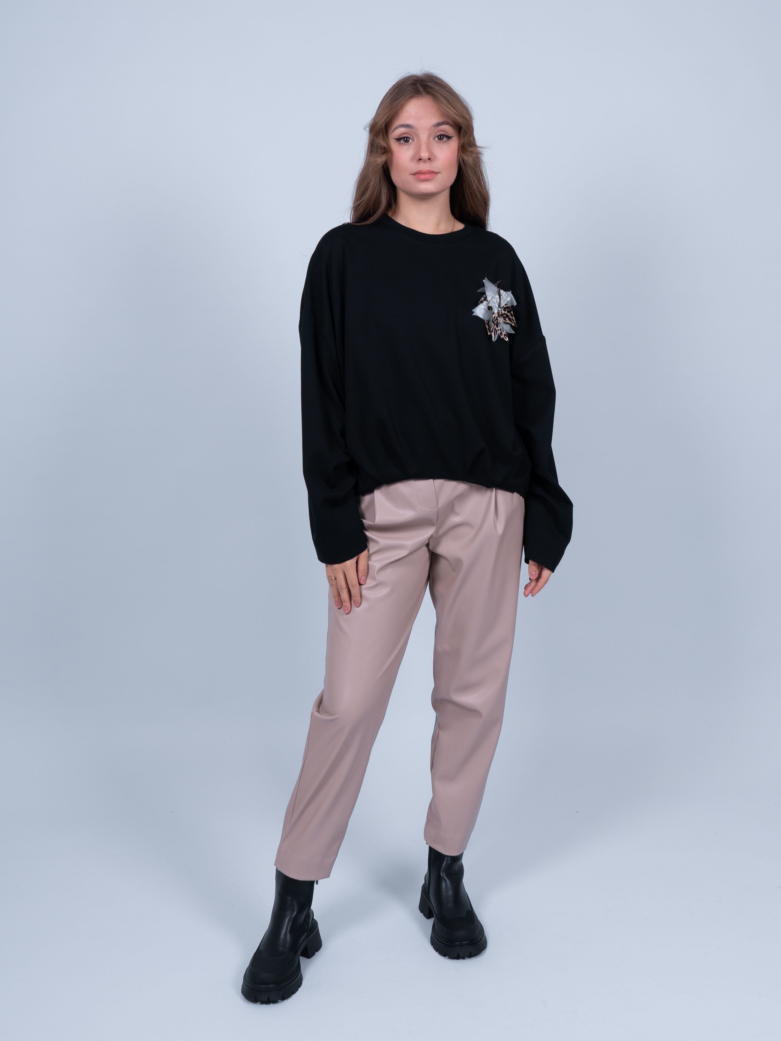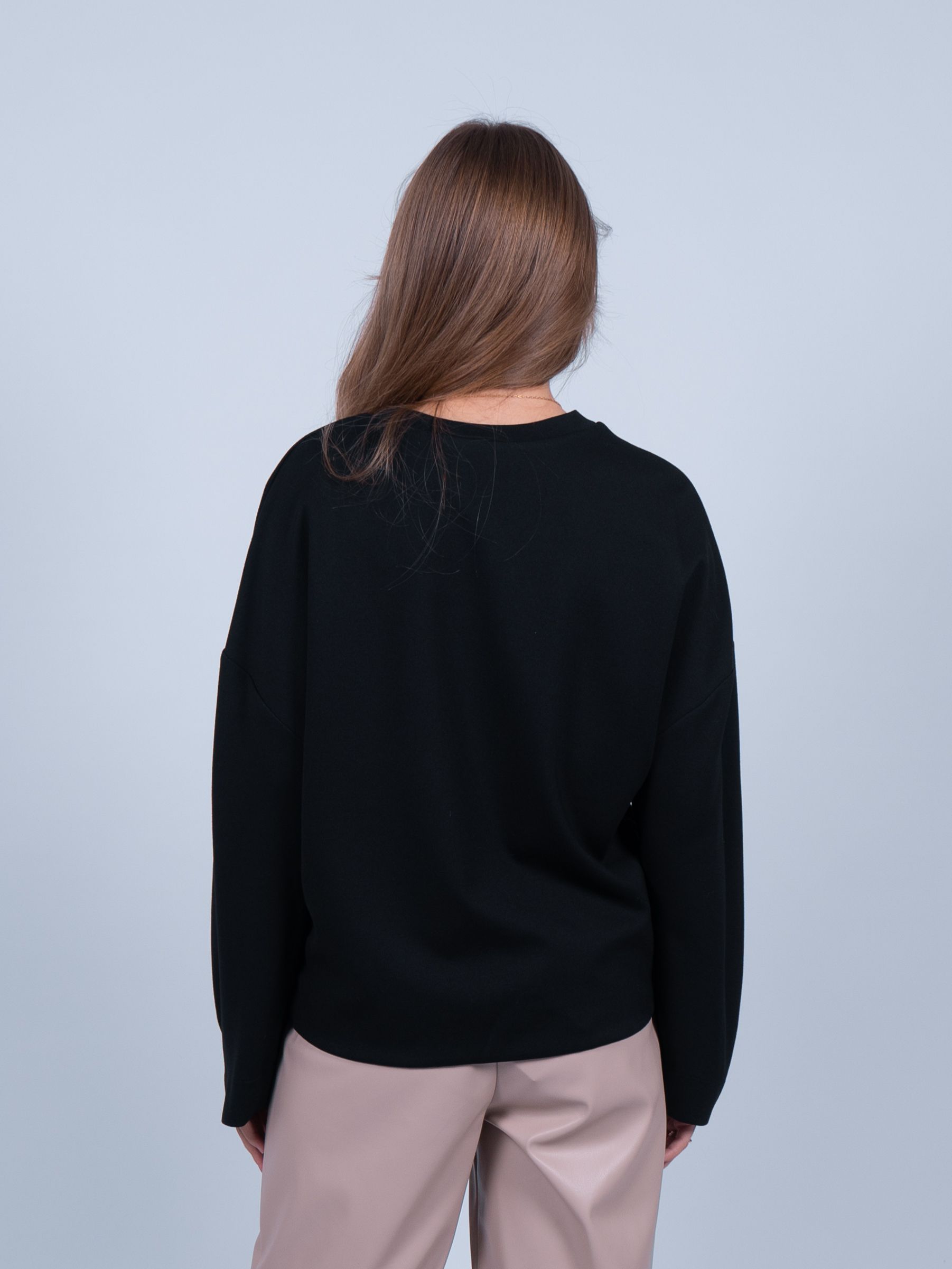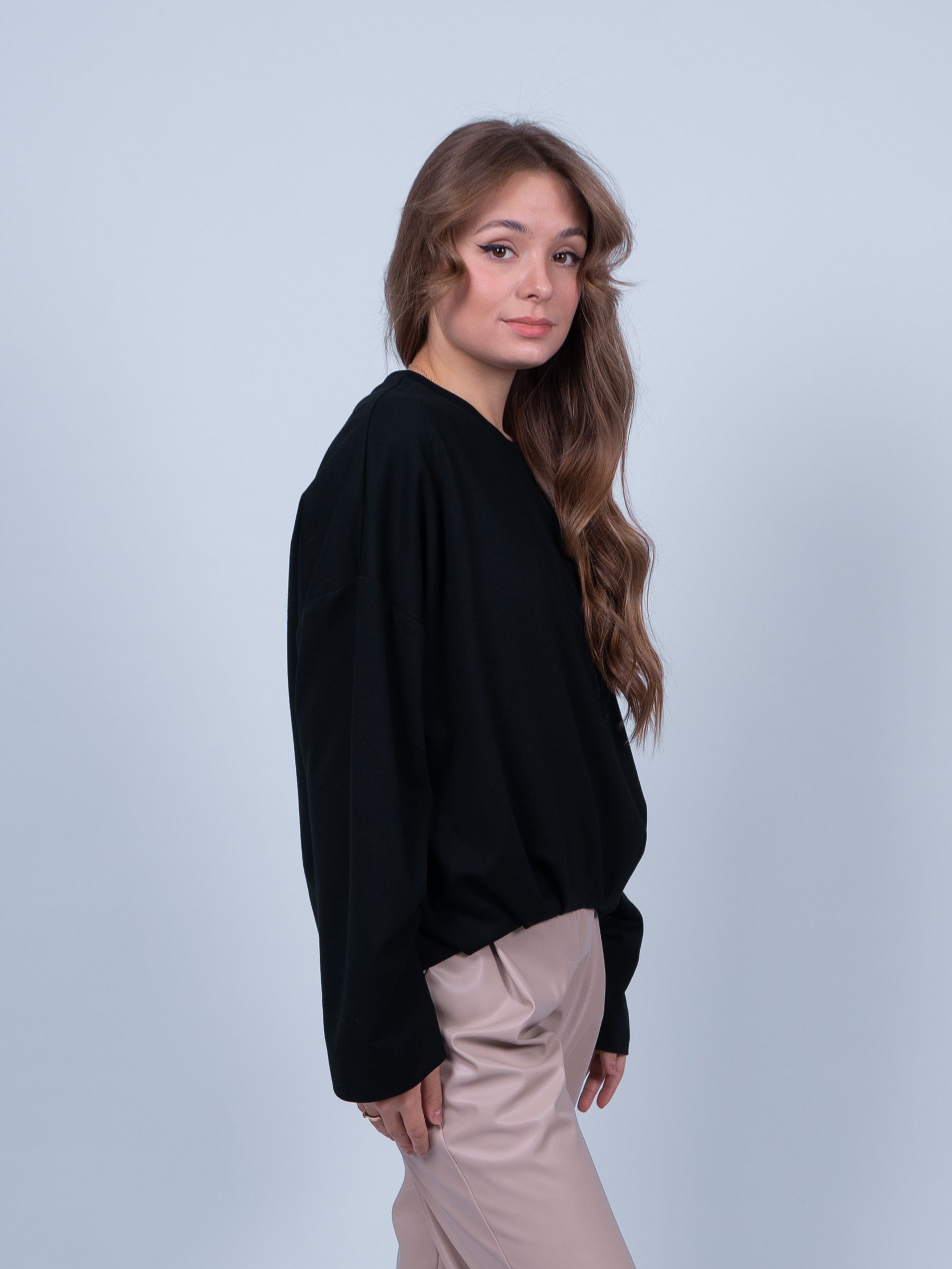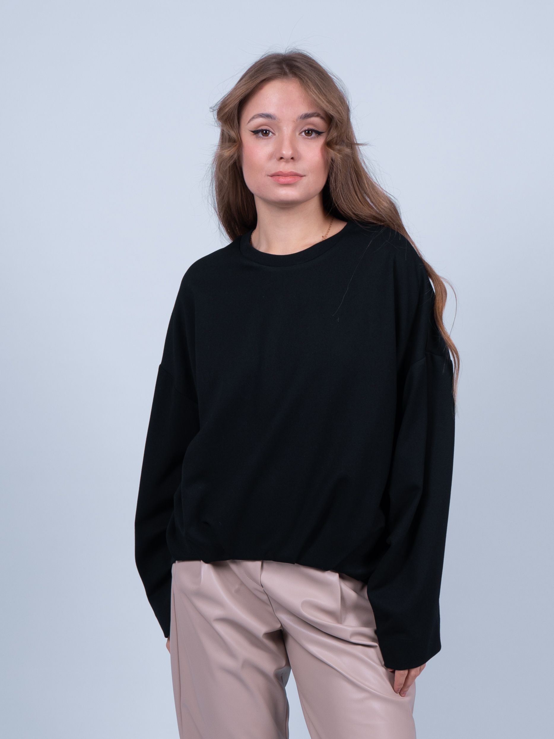 Черный свитер с круглым воротриком для девушек и женщин изготовлен из хлопка с добавлением лайкры, что позволяет делать его мягким на ощупь, приятным к телу, в меру теплым, а также держать форму и цвет со временем после многочисленных стирок.