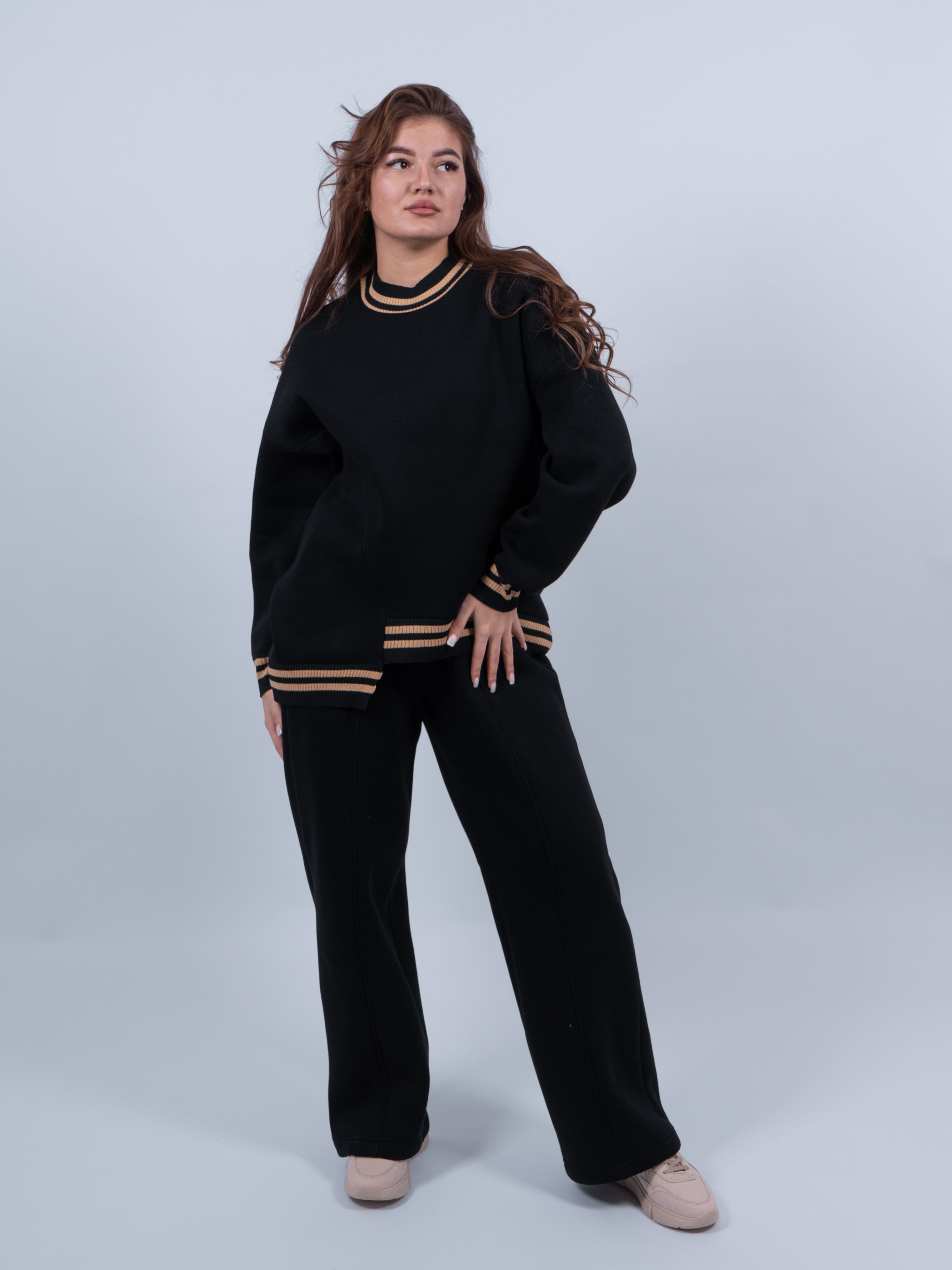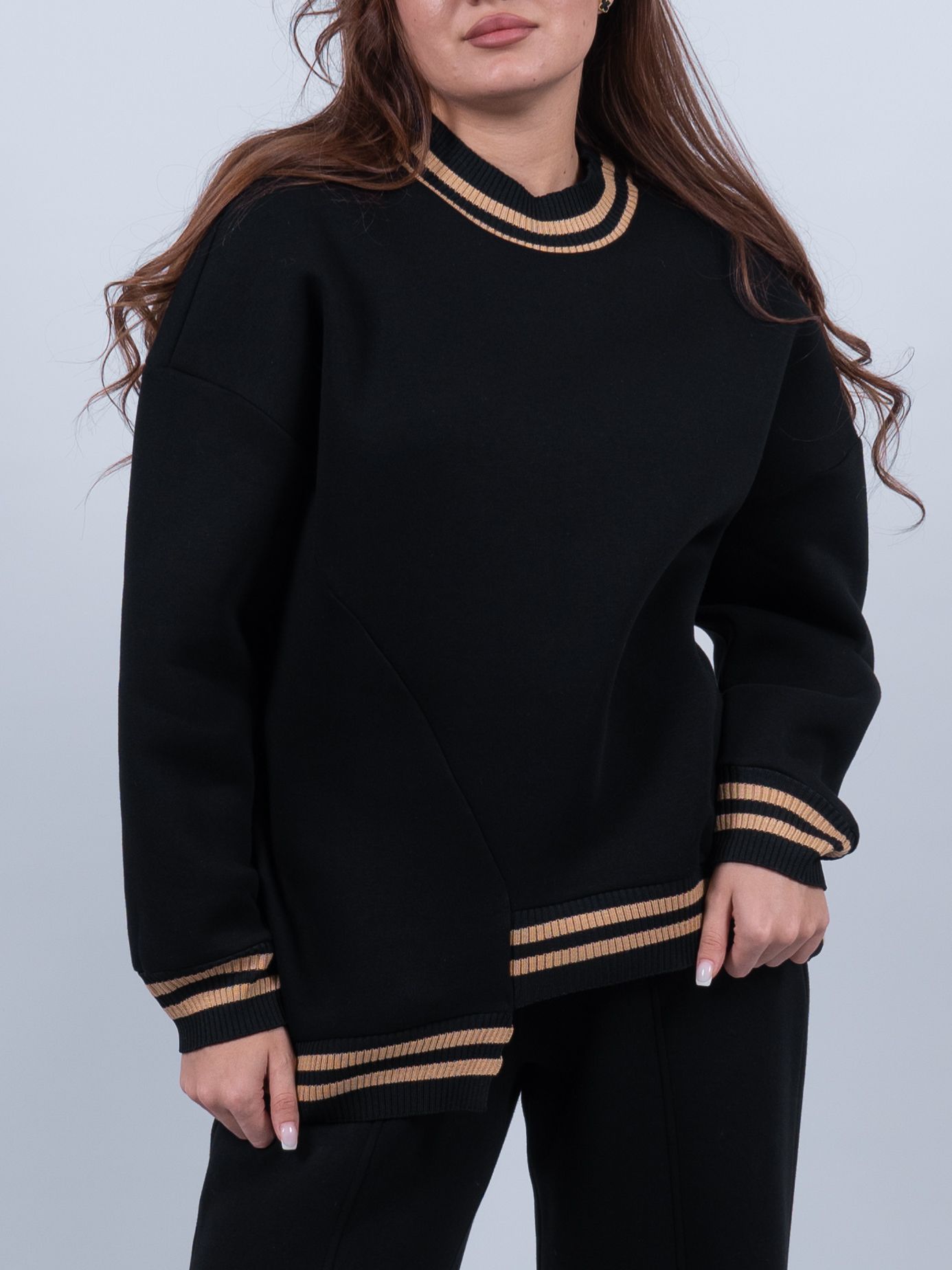 Черный женский джемпер - идеальный выбор для тех, кто ищет теплую, удобную и стильную одежду. Он выполнен из мягкого материала с начесом, который обеспечивает дополнительную теплоизоляцию и комфорт в холодные дни.