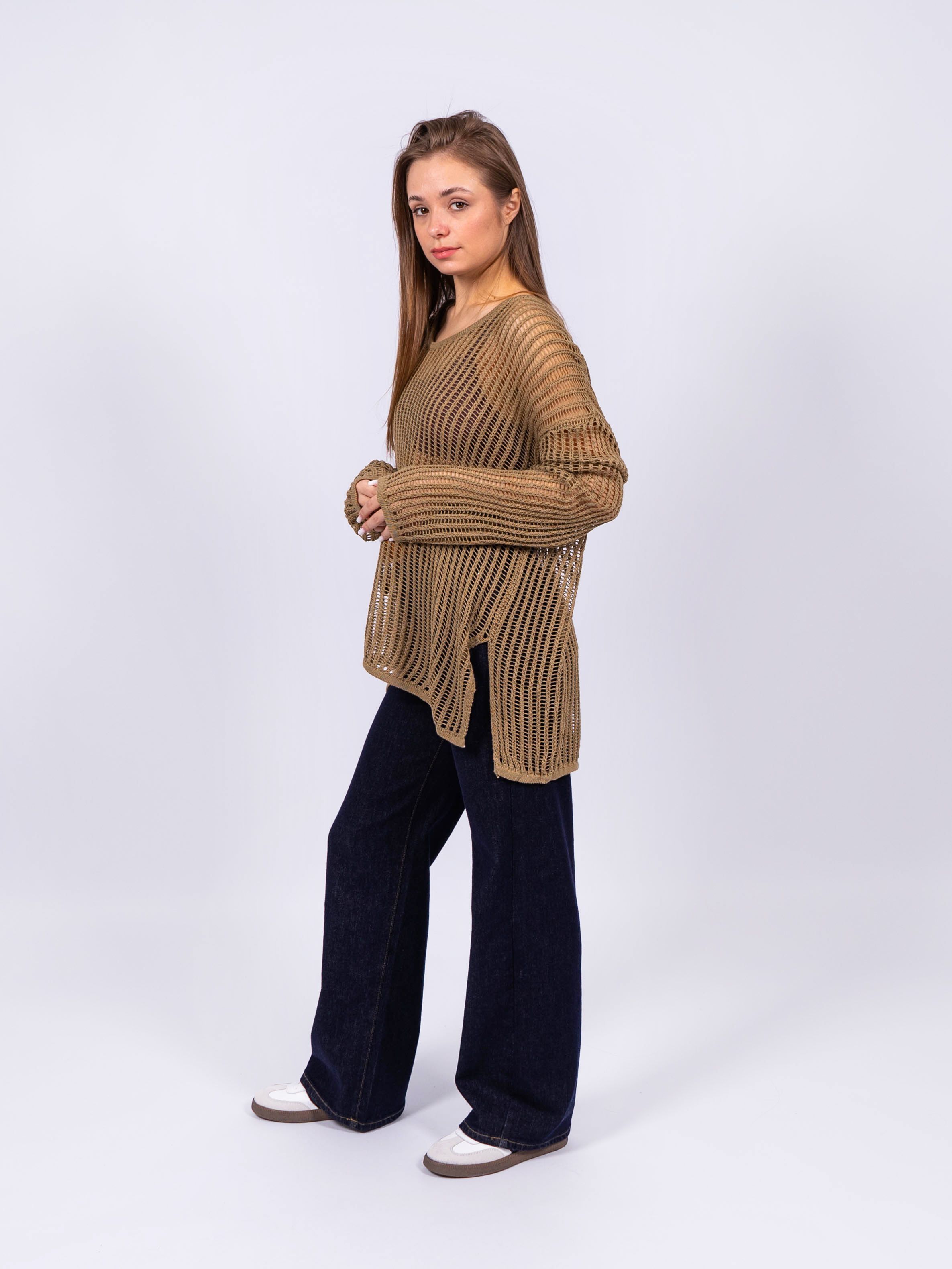 Джемпер женский сетка оверсайз - это идеальный вариант для создания стильного образа. Уникальный дизайн в виде крупной сетчатой вязки придает этой кофте стильный и модный вид. Этот джемпер с круглым вырезом подходит как для повседневных образов, так и для создания элегантного вечернего лука. Кофточка отлично сочетается с джинсами, юбками, брюками.