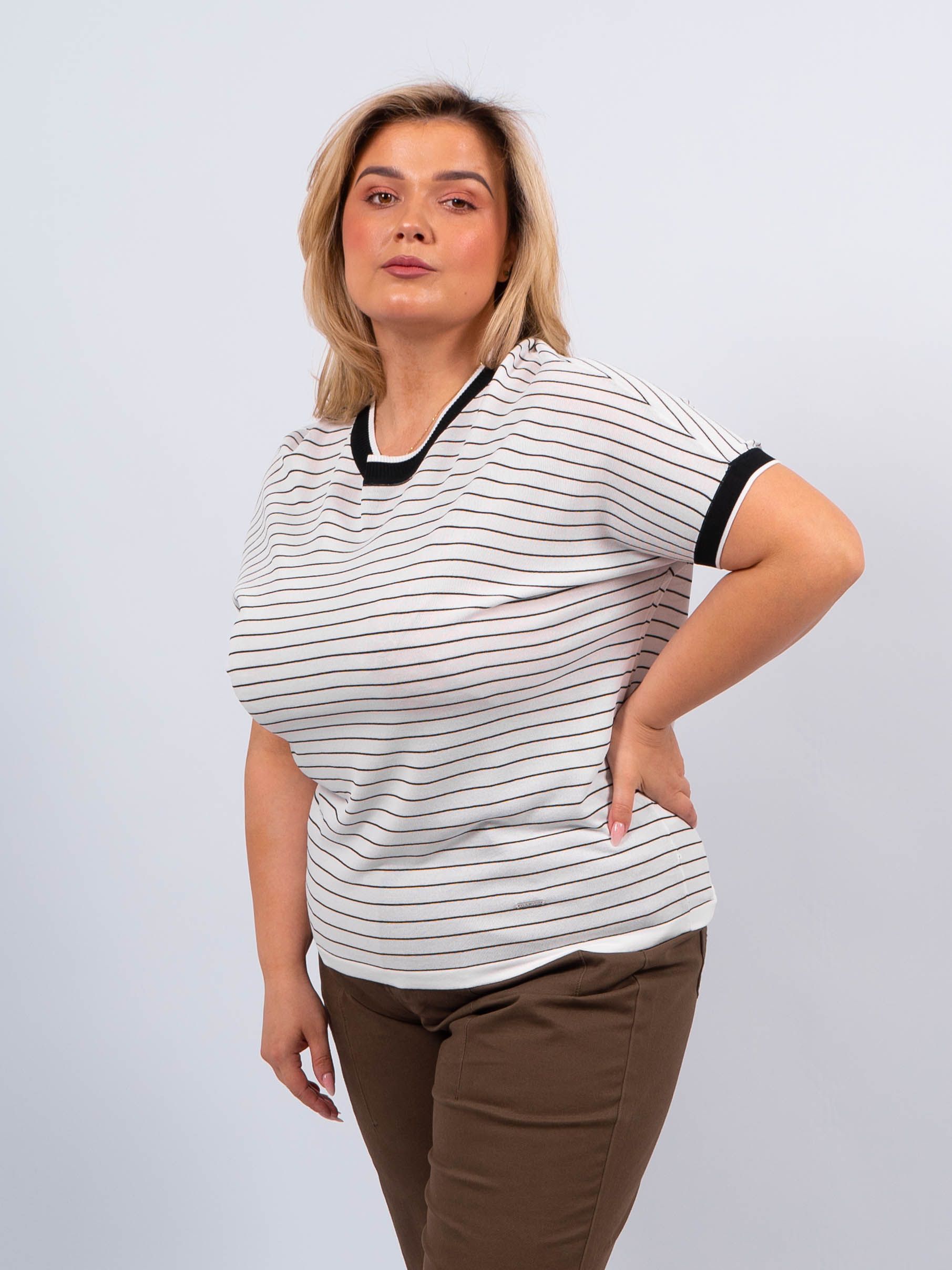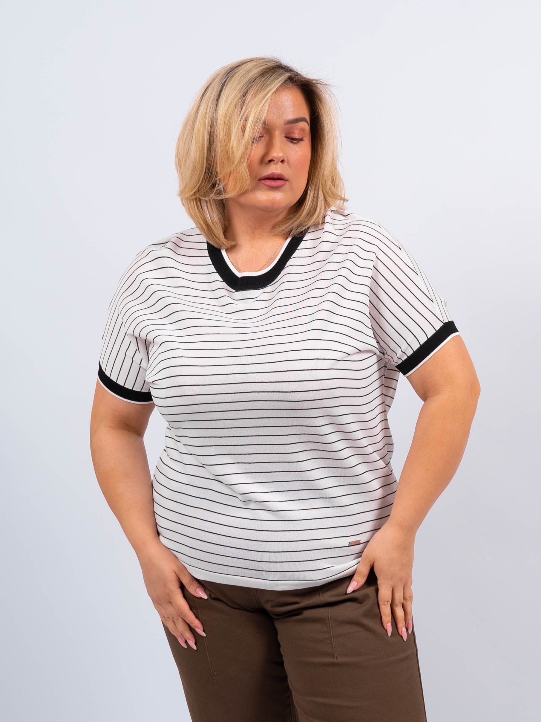 Джемпер белый в полоску - это идеальное дополнение к вашему гардеробу. Она сочетает в себе элегантность и стиль, придавая вашему образу неповторимый шарм. Легкая и дышащая кофточка обеспечит вам комфорт в любой ситуации. Она изготовлена из качественных материалов, что делает ее приятной на ощупь и приятной для носки. Благодаря своему дизайну и крою, она подходит для любой фигуры. Круглый вырез добавляет кофте изысканности и элегантности. Он подчеркнет вашу грацию и придаст шарма вашему образу. Джемпер дополнен черной отделкой, которая придает ему особую привлекательность и оригинальность. Кофта произведена в России с использованием самых современных технологий и качественных материалов. Мы гордимся тем, что наша продукция отвечает высоким стандартам и приносит радость нашим клиентам. Будьте неповторимы и привлекательны вместе с нами!
