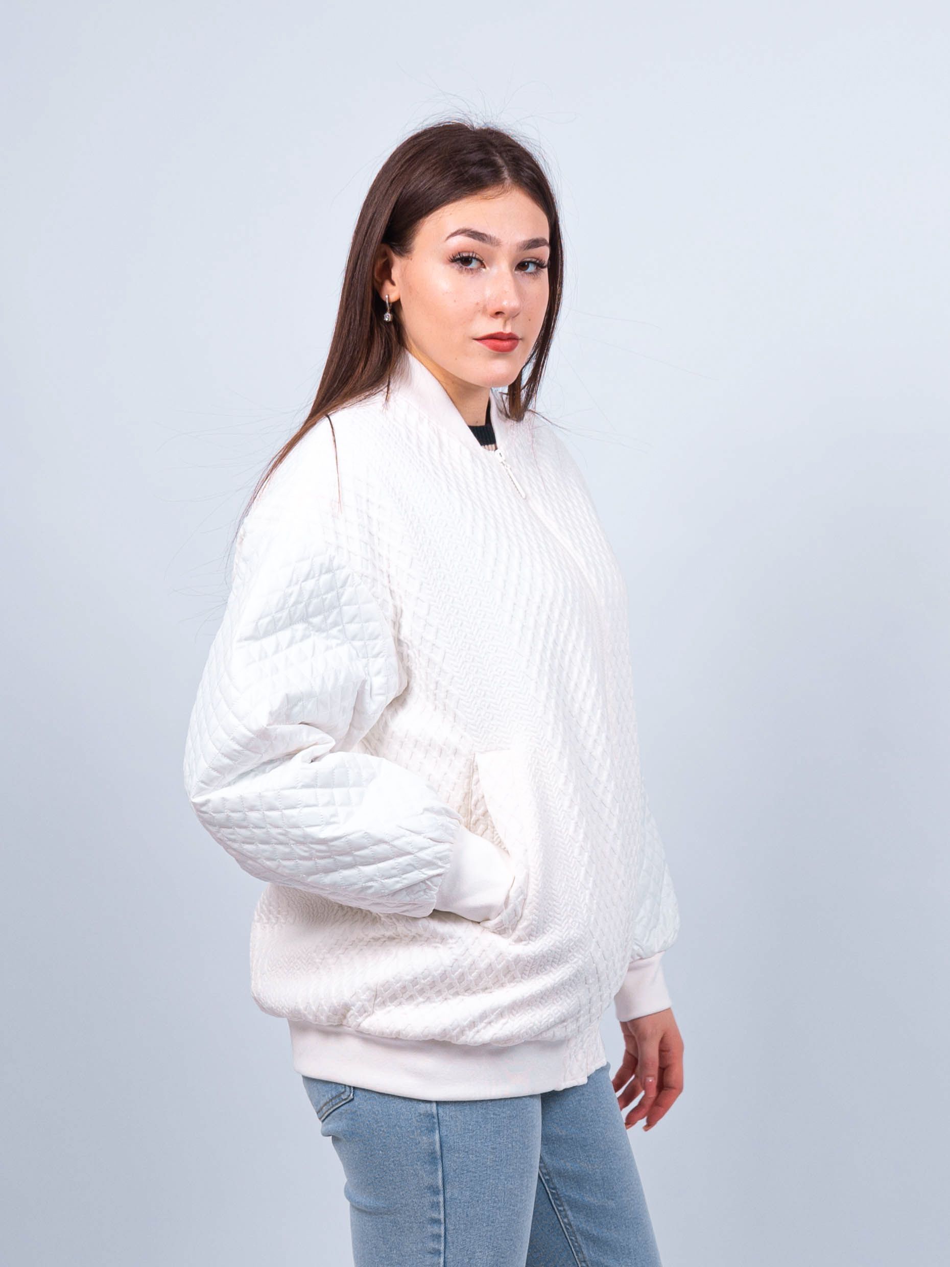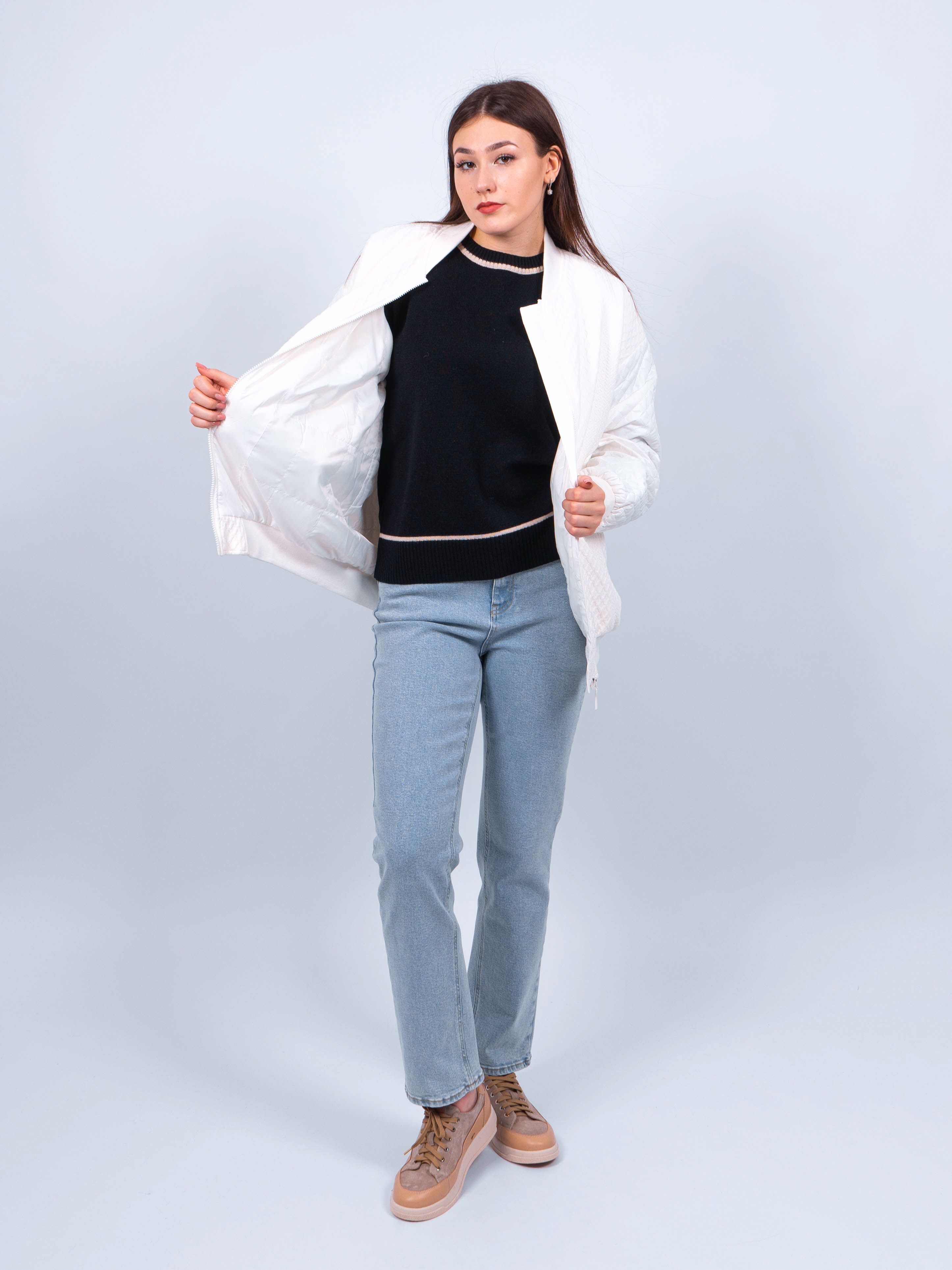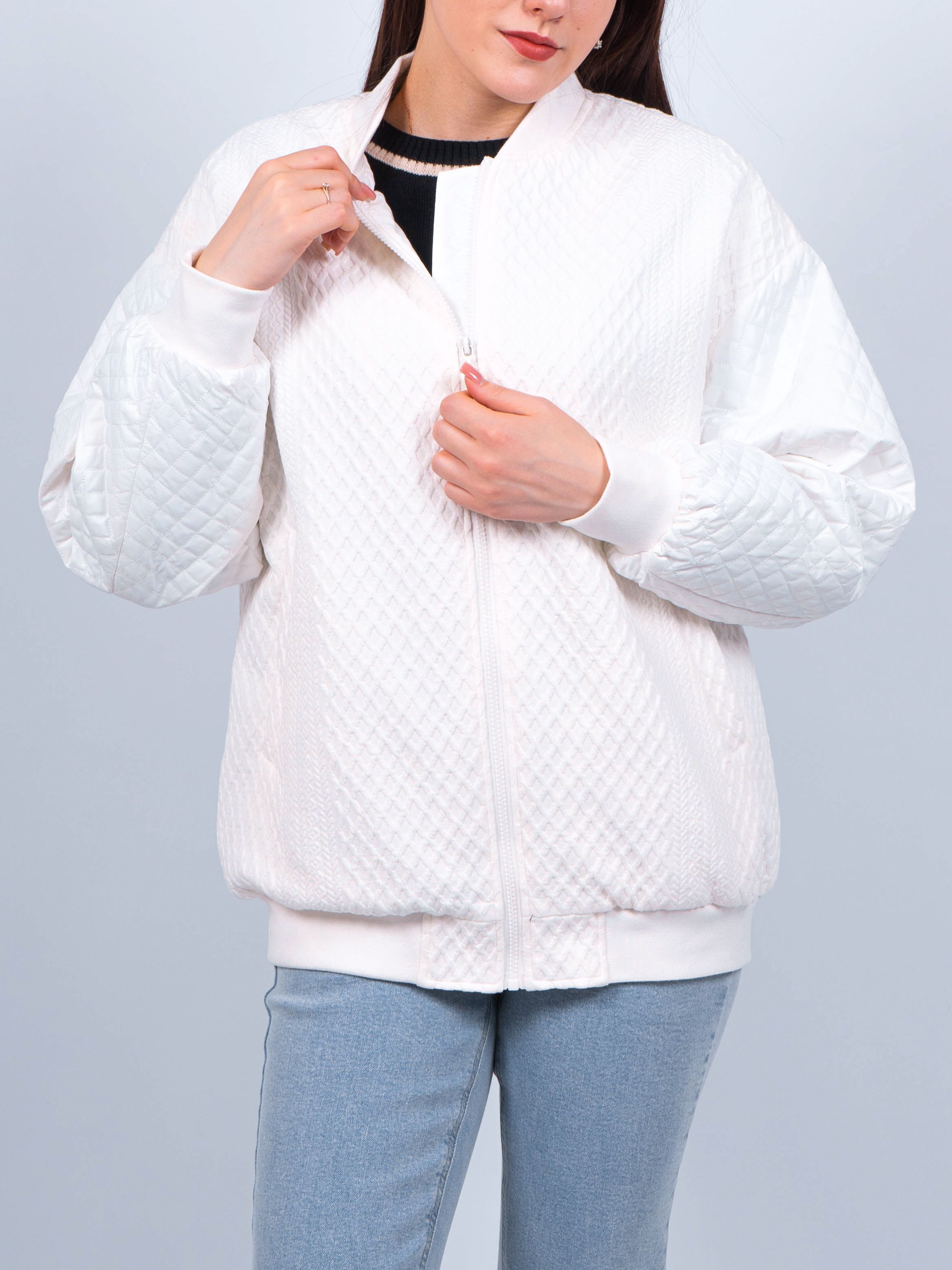 Этот бомбер белый сочетает в себе стильный дизайн, комфорт и функциональность, делая ее идеальным выбором для весны или осени. Неотъемлемая часть вашего гардероба, она поможет вам выглядеть стильно и чувствовать себя комфортно в любых погодных условиях.